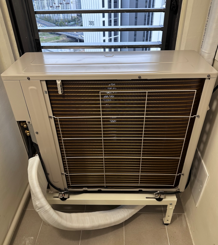 맞추기 위해 실외기 전용 받침대를 제작하여